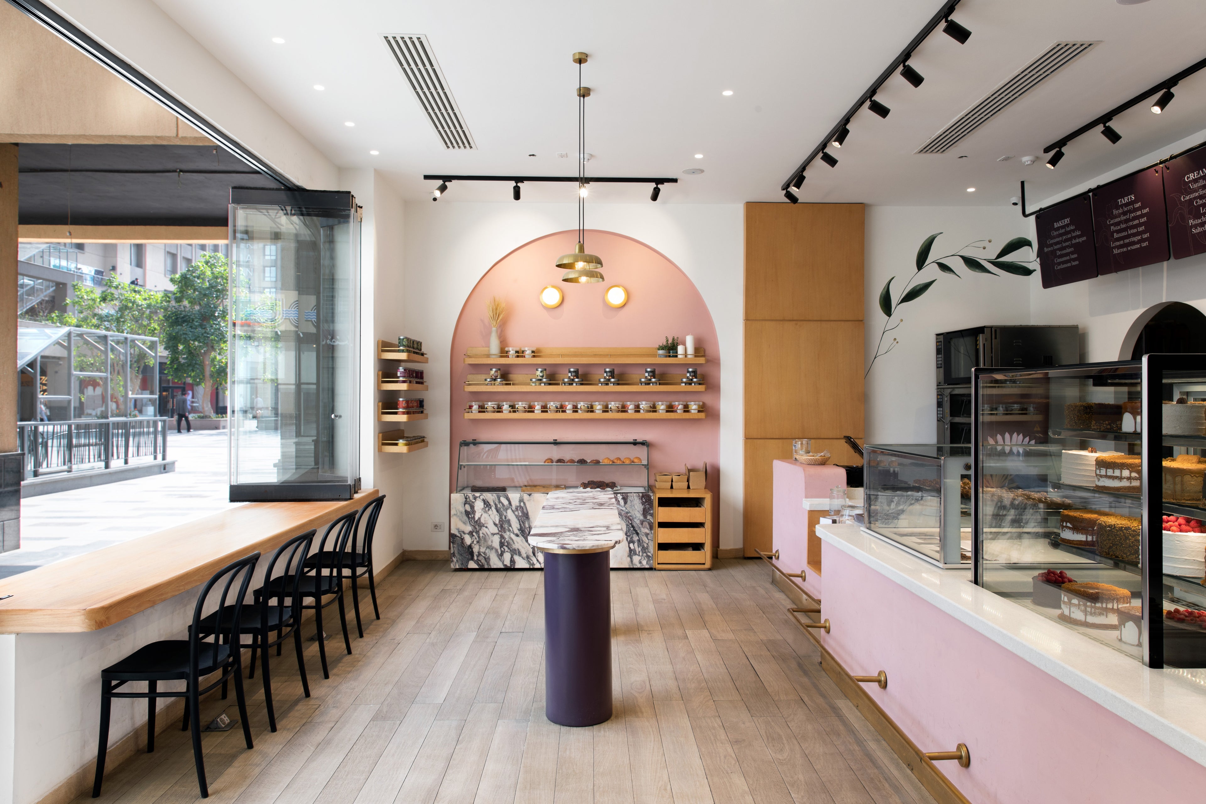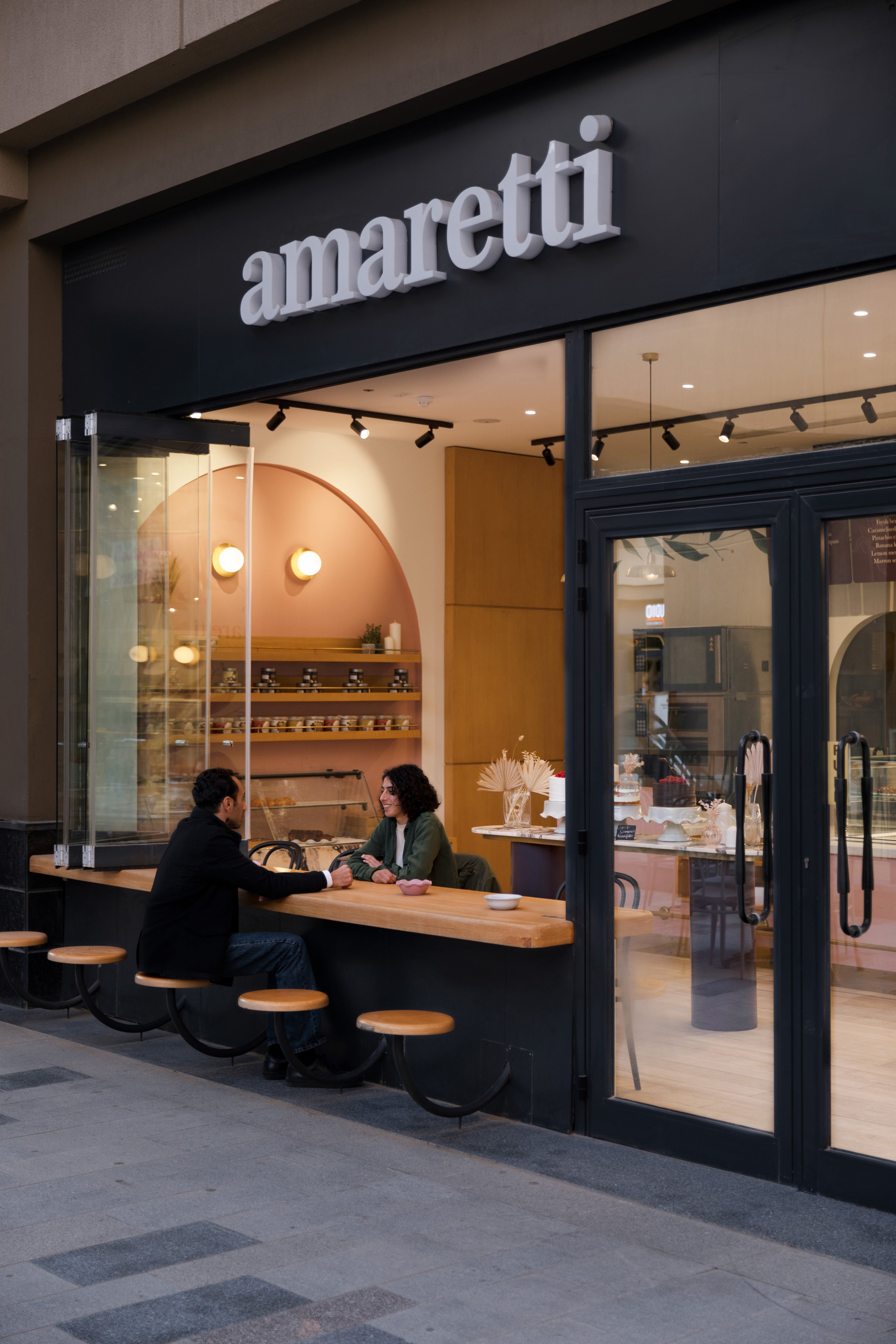 Inviting & balanced — Amaretti, a delightful and welcoming space with a soft palette. A luxurious yet casual ambience achieved through the meticulous selection and balance of materials, colors and textures. Openness & Subtle Softness — On the exterior, a semi-enclosed storefront gives Amaretti a vibrant character, and entices people to enter. As you enter, a light and airy feel is achieved by the subtlety of the elements around, and the particular focus on proportion, balance, and harmony.