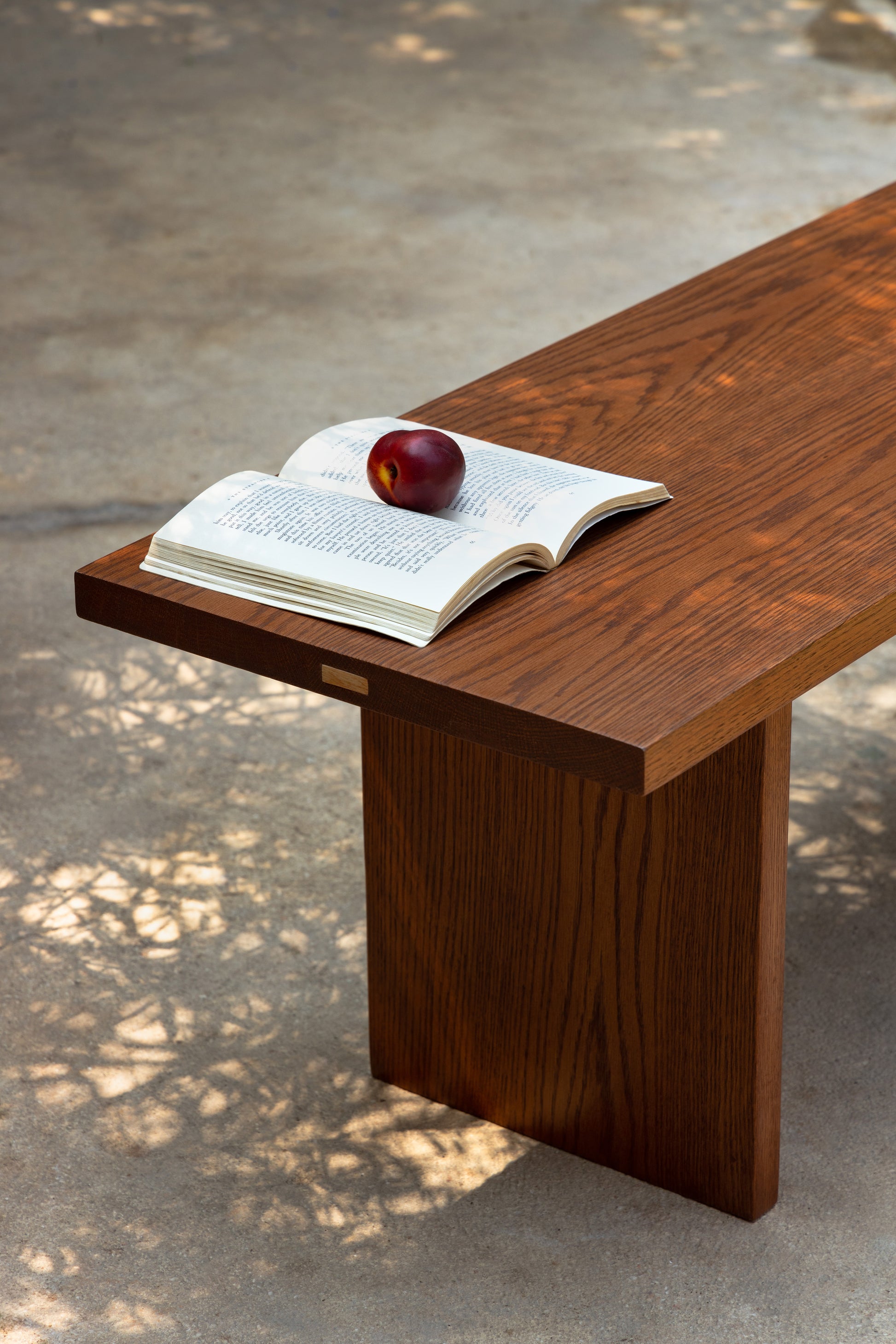 A bench that expresses itself through colour and the natural grains of each piece of wood used to make it.
